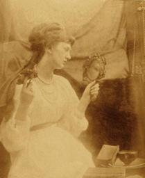 | Keywords: Portrait of May Prinsep holding mirror and flower by Julia Margaret Cameron 1870.jpg en Portrait of May Prinsep holding mirror and flower albumen print by the British photographer Julia Margaret Cameron 370 mm x 270 mm Courtesy of the Dimbola Lodge Museum Isle of Wight 2011-04-24 Dimbola Lodge Museum http //www dimbola com/archive/Page_08_May_Prinsep html Creator Julia Margaret Cameron PD-old-100 Uploaded with UploadWizard Photographs by Julia Margaret Cameron Black and white photographic portraits of women May Prinsep |