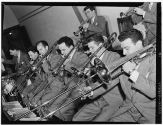 | Keywords: (Portrait of Shelly Manne, Eddie Bert, Harry Forbes, Milt Bernhart, Harry Betts, Bart Varselona, Conte Candoli, and Shelly Manne, 1947 or 1948) (LOC) (5019798129).jpg Gottlieb William P 1917- photographer Portrait of Shelly Manne Eddie Bert Harry Forbes Milt Bernhart Harry Betts Bart Varselona Conte Candoli and Shelly Manne 1947 or 1948 1 negative b w ; 3 1/4 x 4 1/4 in Notes Gottlieb Collection Assignment No 184 Reference print available in Music Division Library of Congress Purchase William P Gottlieb Forms part of William P Gottlieb Collection Library of Congress Subjects Manne Shelly Bert Eddie Forbes Harry Bernhart Milt 1926- Betts Harry Varselona Bart Candoli Conte 1927- Manne Shelly Stan Kenton Orchestra Jazz musicians--1940-1950 Trombonists--1940-1950 Trumpet players--1940-1950 Drummers Musicians --1940-1950 Format Portrait photographs--1940-1950 Cityscape photographs--1940-1950 Film negatives--1940-1950 Rights Info Mr Gottlieb has dedicated these works to the public domain but rights of privacy and publicity may apply http //lcweb2 loc gov/diglib/ihas/html/gottlieb/gottlieb-copyright html lcweb2 loc gov/diglib/ihas/html/gottlieb/gottlieb-copyrig Repository negative Library of Congress Prints Photographs Division Washington D C 20540 USA http //hdl loc gov/loc pnp/pp print hdl loc gov/loc pnp/pp print contact print Library of Congress Prints Photographs Division Washington D C 20540 USA http //hdl loc gov/loc pnp/pp print hdl loc gov/loc pnp/pp print reference print Library of Congress Music Division Washington D C 20540 USA http //loc gov/rr/perform/ loc gov/rr/perform/ Part Of William P Gottlieb Collection DLC 99-401005 General information about the Gottlieb Collection is available at http //lcweb2 loc gov/diglib/ihas/html/gottlieb/gottlieb-home html lcweb2 loc gov/diglib/ihas/html/gottlieb/gottlieb-home html Persistent URL http //hdl loc gov/loc music/gottlieb 04981 hdl loc gov/loc music/gottlieb 04981 Call Number LC-GLB13- 0498<br/> PD-Gottlieb https //www flickr com/photos/library_of_congress/5019798129/ Portrait of Shelly Manne Eddie Bert Harry Forbes Milt Bernhart Harry Betts Bart Varselona Conte Candoli and Shelly Manne 1947 or 1948 LOC https //www flickr com/people/8623220 N02 The Library of Congress http //www loc gov/rr/print/195_copr html noknown The Library of Congress Flickr Commons Flickr-no known copyright restrictions The Library of Congress https //flickr com/photos/8623220 N02/5019798129 2015-09-02 00 07 20 pd Photographs by William P Gottlieb Shelly Manne Eddie Bert Harry Forbes Milt Bernhart Harry Betts Bart Varselona Conte Candoli |