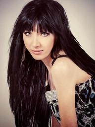 Keywords: portrait studio girl nice grey white black dark hair black hair heavy long hair looking