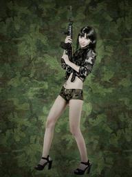 Keywords: portrait studio girl nice grey white black black hair army army woman