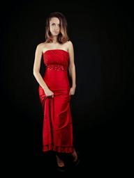 Keywords: portrait studio girl nice grey white black red red dress dress long dress