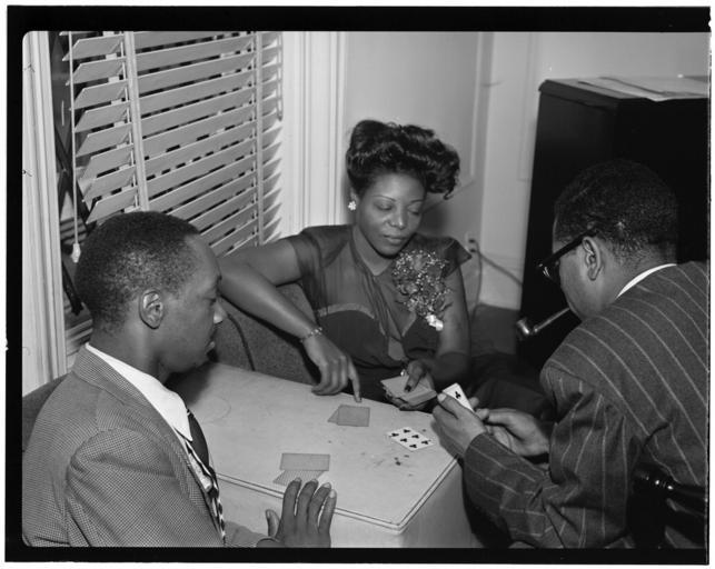 Keywords: (Portrait of Tadd Dameron, Mary Lou Williams, and Dizzy Gillespie, Mary Lou Williams' apartment, New York, N.Y., ca. Aug. 1947) (LOC) (5476589018).jpg Gottlieb William P 1917- photographer Portrait of Tadd Dameron Mary Lou Williams and Dizzy Gillespie Mary Lou Williams' apartment New York N Y ca Aug 1947 1 negative b w ; 3 1/4 x 4 1/4 in Notes Gottlieb Collection Assignment No 338 Purchase William P Gottlieb Forms part of William P Gottlieb Collection Library of Congress Subjects Dameron Tadd 1917-1965 Williams Mary Lou 1910- Gillespie Dizzy 1917- Women jazz musicians--1940-1950 Jazz musicians--1940-1950 Format Portrait photographs--1940-1950 Group portraits--1940-1950 Film negatives--1940-1950 Rights Info Mr Gottlieb has dedicated these works to the public domain but rights of privacy and publicity may apply http //lcweb2 loc gov/diglib/ihas/html/gottlieb/gottlieb-copyright html lcweb2 loc gov/diglib/ihas/html/gottlieb/gottlieb-copyrig Repository negative Library of Congress Prints Photographs Division Washington D C 20540 USA http //hdl loc gov/loc pnp/pp print hdl loc gov/loc pnp/pp print Part Of William P Gottlieb Collection DLC 99-401005 General information about the Gottlieb Collection is available at http //lcweb2 loc gov/diglib/ihas/html/gottlieb/gottlieb-home html lcweb2 loc gov/diglib/ihas/html/gottlieb/gottlieb-home html Persistent URL http //hdl loc gov/loc music/gottlieb 16011 hdl loc gov/loc music/gottlieb 16011 Call Number LC-GLB23- 1601<br/> PD-Gottlieb https //www flickr com/photos/library_of_congress/5476589018/ Portrait of Tadd Dameron Mary Lou Williams and Dizzy Gillespie Mary Lou Williams' apartment New York N Y ca Aug 1947 LOC https //www flickr com/people/8623220 N02 The Library of Congress http //www loc gov/rr/print/195_copr html noknown The Library of Congress Flickr Commons Flickr-no known copyright restrictions The Library of Congress https //flickr com/photos/8623220 N02/5476589018 2015-09-02 00 14 11 pd Pipe smoking Window blinds Photographs by William P Gottlieb |