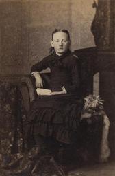 | Keywords: children portraits people Photographer: Reuben R. Sallows (1855 - 1937) Description: Studio portrait of young girl sitting in chair; dark dress with ruffled skirt, black tie around neck, light edging on cuffs; holding an open book in lap; left arm rests on back of striped chair; feet crossed and resting on floral carpet; Sallows imprint across bottom; written in pen on back Virginia Breckon Object ID : 0371-rrs-ogohc-ph View additional photographs by Sallows that are held in other collections at the Reuben R. Sallows Digital Library. Order a higher-quality version of this item by contacting the Huron County Museum (fee applies). Photographer: Reuben R. Sallows (1855 - 1937) Description: Studio portrait of young girl sitting in chair; dark dress with ruffled skirt, black tie around neck, light edging on cuffs; holding an open book in lap; left arm rests on back of striped chair; feet crossed and resting on floral carpet; Sallows imprint across bottom; written in pen on back Virginia Breckon Object ID : 0371-rrs-ogohc-ph View additional photographs by Sallows that are held in other collections at the Reuben R. Sallows Digital Library. Order a higher-quality version of this item by contacting the Huron County Museum (fee applies). |