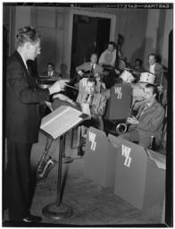 | Keywords: (Portrait of Walter Hendl, Tony Aless, Billy Bauer, Chubby Jackson, Don Lamond, Woody Herman, and Flip Phillips, Carnegie Hall(?), New York, N.Y.(?), ca. Apr. 1946) (LOC) (4843746780).jpg Gottlieb William P 1917- photographer Portrait of Walter Hendl Tony Aless Billy Bauer Chubby Jackson Don Lamond Woody Herman and Flip Phillips Carnegie Hall New York N Y ca Apr 1946 1 negative b w ; 3 1/4 x 4 1/4 in Caption from Down Beat Prior to Woody Herman's recent very successful Carnegie Hall concert the band put in several days of serious rehearsing of both their own jump numbers and in particular on Igor Stravinsky's Ebony Concerto Top photo shows Walter Hendl rehearsing the Herd he conducted the Concerto at the concert and during the air premiere while at the bottom Chubby Jackson doesn't seem to dig the addition of the harp which was used in the number Abraham Rosen is the harpist the third figure of course is Woody Musicians in the top shot are Tony Aless piano; Bill Bauer guitar; Chubby Jackson bass; Don Lamond drums; Woody Herman clarinet; and Flip Phillips tenor Notes Gottlieb Collection Assignment No 402 Reference print available in Music Division Library of Congress Purchase William P Gottlieb Forms part of William P Gottlieb Collection Library of Congress In 'Twas not all for naught Down Beat v 13 no 9 Apr 22 1946 p 3 Subjects Hendl Walter 1917- Aless Tony Bauer Billy Jackson Chubby Lamond Don Herman Woody 1913-1987 Phillips Flip Jazz musicians--1940-1950 Big bands--1940-1950 Clarinetists--1940-1950 Conductors Music --1940-1950 Format Portrait photographs--1940-1950 Cityscape photographs--1940-1950 Film negatives--1940-1950 Rights Info Mr Gottlieb has dedicated these works to the public domain but rights of privacy and publicity may apply http //lcweb2 loc gov/diglib/ihas/html/gottlieb/gottlieb-copyright html lcweb2 loc gov/diglib/ihas/html/gottlieb/gottlieb-copyrig Repository negative Library of Congress Prints Photographs Division Washington D C 20540 USA http //hdl loc gov/loc pnp/pp print hdl loc gov/loc pnp/pp print reference print Library of Congress Music Division Washington D C 20540 USA http //loc gov/rr/perform/ loc gov/rr/perform/ Part Of William P Gottlieb Collection DLC 99-401005 General information about the Gottlieb Collection is available at http //lcweb2 loc gov/diglib/ihas/html/gottlieb/gottlieb-home html lcweb2 loc gov/diglib/ihas/html/gottlieb/gottlieb-home html Persistent URL http //hdl loc gov/loc music/gottlieb 04071 hdl loc gov/loc music/gottlieb 04071 Call Number LC-GLB13- 0407<br/> PD-Gottlieb https //www flickr com/photos/library_of_congress/4843746780/ Portrait of Walter Hendl Tony Aless Billy Bauer Chubby Jackson Don Lamond Woody Herman and Flip Phillips Carnegie Hall New York N Y ca Apr 1946 LOC https //www flickr com/people/8623220 N02 The Library of Congress http //www loc gov/rr/print/195_copr html noknown The Library of Congress Flickr Commons <gallery> File Gottlieb group portrait 04071 jpg </gallery> Flickr-no known copyright restrictions The Library of Congress https //flickr com/photos/8623220 N02/4843746780 2015-09-02 00 08 46 pd Photographs by William P Gottlieb Billy Bauer Walter Hendl Tony Aless Billy Bauer Chubby Jackson Don Lamond Woody Herman Flip Phillips (Portrait of Walter Hendl, Tony Aless, Billy Bauer, Chubby Jackson, Don Lamond, Woody Herman, and Flip Phillips, Carnegie Hall(?), New York, N.Y.(?), ca. Apr. 1946) (LOC) (4843746780).jpg Gottlieb William P 1917- photographer Portrait of Walter Hendl Tony Aless Billy Bauer Chubby Jackson Don Lamond Woody Herman and Flip Phillips Carnegie Hall New York N Y ca Apr 1946 1 negative b w ; 3 1/4 x 4 1/4 in Caption from Down Beat Prior to Woody Herman's recent very successful Carnegie Hall concert the band put in several days of serious rehearsing of both their own jump numbers and in particular on Igor Stravinsky's Ebony Concerto Top photo shows Walter Hendl rehearsing the Herd he conducted the Concerto at the concert and during the air premiere while at the bottom Chubby Jackson doesn't seem to dig the addition of the harp which was used in the number Abraham Rosen is the harpist the third figure of course is Woody Musicians in the top shot are Tony Aless piano; Bill Bauer guitar; Chubby Jackson bass; Don Lamond drums; Woody Herman clarinet; and Flip Phillips tenor Notes Gottlieb Collection Assignment No 402 Reference print available in Music Division Library of Congress Purchase William P Gottlieb Forms part of William P Gottlieb Collection Library of Congress In 'Twas not all for naught Down Beat v 13 no 9 Apr 22 1946 p 3 Subjects Hendl Walter 1917- Aless Tony Bauer Billy Jackson Chubby Lamond Don Herman Woody 1913-1987 Phillips Flip Jazz musicians--1940-1950 Big bands--1940-1950 Clarinetists--1940-1950 Conductors Music --1940-1950 Format Portrait photographs--1940-1950 Cityscape photographs--1940-1950 Film negatives--1940-1950 Rights Info Mr Gottlieb has dedicated these works to the public domain but rights of privacy and publicity may apply http //lcweb2 loc gov/diglib/ihas/html/gottlieb/gottlieb-copyright html lcweb2 loc gov/diglib/ihas/html/gottlieb/gottlieb-copyrig Repository negative Library of Congress Prints Photographs Division Washington D C 20540 USA http //hdl loc gov/loc pnp/pp print hdl loc gov/loc pnp/pp print reference print Library of Congress Music Division Washington D C 20540 USA http //loc gov/rr/perform/ loc gov/rr/perform/ Part Of William P Gottlieb Collection DLC 99-401005 General information about the Gottlieb Collection is available at http //lcweb2 loc gov/diglib/ihas/html/gottlieb/gottlieb-home html lcweb2 loc gov/diglib/ihas/html/gottlieb/gottlieb-home html Persistent URL http //hdl loc gov/loc music/gottlieb 04071 hdl loc gov/loc music/gottlieb 04071 Call Number LC-GLB13- 0407<br/> PD-Gottlieb https //www flickr com/photos/library_of_congress/4843746780/ Portrait of Walter Hendl Tony Aless Billy Bauer Chubby Jackson Don Lamond Woody Herman and Flip Phi