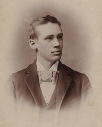 | Keywords: portraits people portrait monochrome indoor Photographer: Reuben R. Sallows (1855 - 1937) Description: Studio portrait, head and shoulders, of young man, facing right; wears dark jacket and vest, light shirt, large bow tie with leaf pattern, Sallows imprint across the bottom; sticker across bottom identifies subject as Howard Cox Object ID : 0314-rrs-ogohc-ph View additional photographs by Sallows that are held in other collections at the Reuben R. Sallows Digital Library. Order a higher-quality version of this item by contacting the Huron County Museum (fee applies). Photographer: Reuben R. Sallows (1855 - 1937) Description: Studio portrait, head and shoulders, of young man, facing right; wears dark jacket and vest, light shirt, large bow tie with leaf pattern, Sallows imprint across the bottom; sticker across bottom identifies subject as Howard Cox Object ID : 0314-rrs-ogohc-ph View additional photographs by Sallows that are held in other collections at the Reuben R. Sallows Digital Library. Order a higher-quality version of this item by contacting the Huron County Museum (fee applies). |