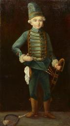 | Keywords: Porträt eines Jungen in Husarenuniform.jpg century 19 Oil on canvas cm 121 71 Institution http //www fischerauktionen ch/ other versions PD-old-100 Works by Friedrich August von Kaulbach 19th-century portrait paintings location missing 1899< Portraits of unknown children 19th-century portrait paintings not categorised by year Male 19th-century oil on canvas paintings 19th-century oil portraits of boys at full length 1899< Badminton in art Blue clothing in art male Children with fur in art Children with military uniforms Frogs fasteners Male boots in portrait paintings 1899< Paintings by Friedrich August von Kaulbach with fur Portrait paintings of men holding swords 1899< Portrait paintings of standing boys Portrait paintings with sports equipment 1899< Portraits of hussars 1899< Portraits wearing caps 1899< Right hand on hip in portrait paintings 1899< |