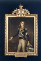 | Keywords: Porträtt av Gustav IV Adolf - Livrustkammaren - 12889.tif Gustav IV Adolf av Sverige plain text sv Oljemålning på duk Duken med tvärgående söm på baksidan <br/>Knäbild fas v uniform vita byxor blå rock med vit armbindel spetshalskrås Serafimerordens axelband och kraschan ordenstecken för kommendör av Svärds- Nordstjärne- och Vasaorden I v hand plymagerad hatt h hand pekar på den svenska kungakronan Maria Eleonoras krona liggande på ett hyende på pall med ben i form av karyatider Gulbrun bakgrund till v pelare till h stol med mantel <br/>Otydlig signatur vid nederkanten Jonas Forsslund 1794 Påskrift med svart färg a t Konung Gustaf IV Adolph Kilad spännram av furu med tvärslå Upptill fastklistrad pappersetikett med maskinpåskrift 2583 <br/>Skuren på framsidan förgylld prydnadsram av furu Dekor med pärlstavar två på framsidan flankerande en slät list en vid bakkanten Vid ytterkanten en bred bladstav Nertill en rektangulär textplatta med svart text GUSTAF IV ADOLF Upptill överstycke i form av kartusch krönt av lös kunglig krona på kartuschen en oval sköld med tre kronor horisontell böjd skraffering runt skölden Serafimerordens kedja och tecken bakom kartuschen två korslagda lagerkvistar <br/>På prydnadsramens baksidan iskruvat två kraftiga järnringar Vid överkanten två järnringar med 80 mm långa triangulära beslag fastspikade på ramens baksida I den ena ringen fäst adresslapp av linne med bläckpåskrift R U Rudbeck // Edsberg På kronans och ramens baksida fastklistrat papperlapp med maskinpåskrift 2597 original caption Porträtt av Gustav IV Adolf 1794 fir - canvas size mm 360 överstycke size mm 1205 ram size mm 1505 ram size mm 935 dager size mm 1235 dager LRK Reinhold T G C G Rudbeck friherre hovmarskalk Gustaf Göran Gabriel Oxenstierna greve ceremonimästare 1793-1860 Värnbergs gård Sverige Galenpannan - Gustav IV Adolf i porträttkonsten 2000 Jonas Forslund Konung Gustaf IV Adolph Gustav IV Adolf av Sverige GUSTAF IV ADOLF Gustav IV Adolf av Sverige Jonas Forslund Konung Gustaf IV Adolph Gustav IV Adolf av Sverige GUSTAF IV ADOLF Gustav IV Adolf av Sverige place of origin original filename lm_t01648 45539 inventory number LRK 9004 12889 PD Portrait paintings Media contributed by LSH dim-with multiple size templates Media contributed by LSH unmatched creator Media contributed by LSH tag as oil on canvas Media contributed by LSH 2014-11 |