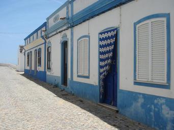 Keywords: portugal blue shutters curtain painting heiss summer asphalt hot live home