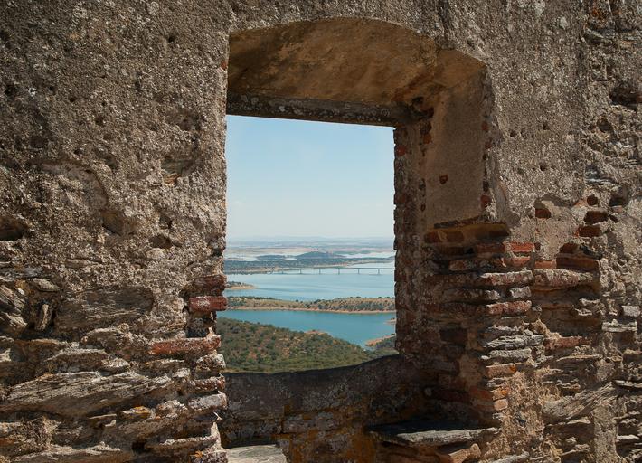 Keywords: portugal castle ruin lake ramparts