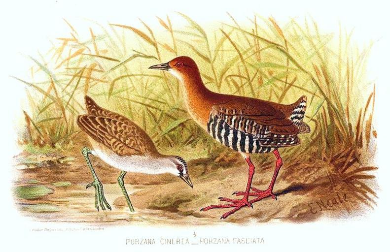 | Keywords: Porzana cinerea - Porzana fasciata.jpg en White-browed Crake Porzana cinerea - Porzana fasciata Red-legged Crake Rallina fasciata fr Marouette grise Porzana cinerea - Porzana fasciata Râle barré Rallina fasciata http //www ancestryimages com/proddetail php prod f4949 The Game Birds of India Burmah and Ceylon Creator Edward Neale published in Hume Marshall's ~ 1890 PD-old-100 Amaurornis cinerea Rallina fasciata The Game Birds of India Burmah and Ceylon 1879-1881 by Hume and Marshall Edward Neale Sexual dimorphism |