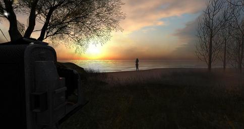 Keywords: posing woman naked nudist landscape sky sea camera