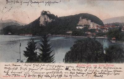 | Keywords: Postcard of Bled 1902.jpg Postcard of Bled http //www ebay com/itm/Germany-Deutsches-Reich-Slovenia-Veldes-Bled-AK-Postcard-1902-to-Romania-VIDP-/142219081639 author 1902 PD-Slovenia 1902 postcards of Slovenia Colored postcards of Bled Postcards of Lake Bled Historical images of Bled Castle with Lake Bled in the foreground Images from eBay |