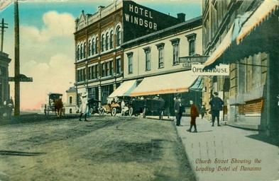 | Keywords: outdoor "Church Street Showing the Leading Hotel of Nanaimo" View looking NE up the 000-block of Church Street in Nanaimo, BC on Vancouver Island. "Church Street Showing the Leading Hotel of Nanaimo" View looking NE up the 000-block of Church Street in Nanaimo, BC on Vancouver Island. |