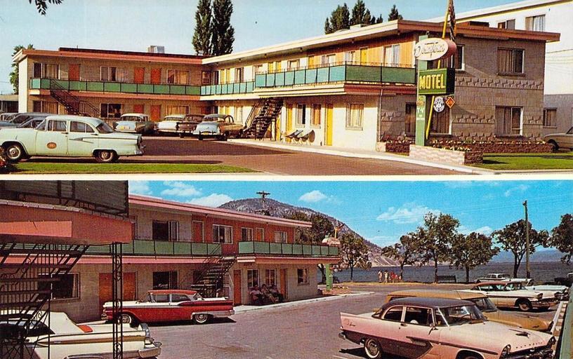 | Keywords: outdoor architecture building "Penticton's finest. THE DOWNTOWN MOTEL • On the Shores of Beautiful Lake Okanagan • 17 De Luxe Units - with or without kitchen • Air-Conditioned • TV - 2 Blocks from City Centre Lakeshore Drive PENTICTON, B. C. Phone HYatt 2-4098 Your hosts: Irma and Harry Patrick" Post Card. 49643-B. Pub. & Photographed by Hugo Redivo, REDIVO CAMERA CENTRE & STUDIO, Penticton, B. C., Canada. Made by Dexter, West Nyack, N. Y. Printed in U.S.A. "Penticton's finest. THE DOWNTOWN MOTEL • On the Shores of Beautiful Lake Okanagan • 17 De Luxe Units - with or without kitchen • Air-Conditioned • TV - 2 Blocks from City Centre Lakeshore Drive PENTICTON, B. C. Phone HYatt 2-4098 Your hosts: Irma and Harry Patrick" Post Card. 49643-B. Pub. & Photographed by Hugo Redivo, REDIVO CAMERA CENTRE & STUDIO, Penticton, B. C., Canada. Made by Dexter, West Nyack, N. Y. Printed in U.S.A. |