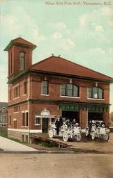 | Keywords: outdoor architecture building "West End Fire Hall, Vancouver, B.C." Souvenir Post Card. The Valentine & Sons' Publishing Co., Ltd. Montreal and Toronto. Printed in Great Britain. Vancouver Fire Hall No. 6, 1500 Nelson Street (SW corner of Nelson and Nicola Streets) in the West End, Vancouver, BC. Built 1907; Extant. Reportedly the first fire hall on the continent to be designed for trucks. Vancouver had one of the earliest motorized fire departments in North America. A 'self-propelled' engine — the first in Canada — joined the force in 1908, and the last horse was retired in 1917. Fire fighting vehicles shown are a Seagrave Auto Hose Waggon and Auto Chemical Engine. "West End Fire Hall, Vancouver, B.C." Souvenir Post Card. The Valentine & Sons' Publishing Co., Ltd. Montreal and Toronto. Printed in Great Britain. Vancouver Fire Hall No. 6, 1500 Nelson Street (SW corner of Nelson and Nicola Streets) in the West End, Vancouver, BC. Built 1907; Extant. Reportedly the first fire hall on the continent to be designed for trucks. Vancouver had one of the earliest motorized fire departments in North America. A 'self-propelled' engine — the first in Canada — joined the force in 1908, and the last horse was retired in 1917. Fire fighting vehicles shown are a Seagrave Auto Hose Waggon and Auto Chemical Engine. |