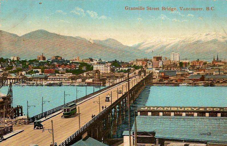 | Keywords: water waterfront outdoor skyline bay city river landscape architecture bridge watercourse shore coast lake sea seaside infrastructure building building structure road "Granville Street Bridge, Vancouver, B.C." The Valentine & Sons' Publishing Co., Ltd. Montreal and Toronto. Printed in Great Britain. Northerly view of the second Granville Street Bridge (1909-1954) in Vancouver, BC. The bridge was a medium level steel type with swing span. "Granville Street Bridge, Vancouver, B.C." The Valentine & Sons' Publishing Co., Ltd. Montreal and Toronto. Printed in Great Britain. Northerly view of the second Granville Street Bridge (1909-1954) in Vancouver, BC. The bridge was a medium level steel type with swing span. |