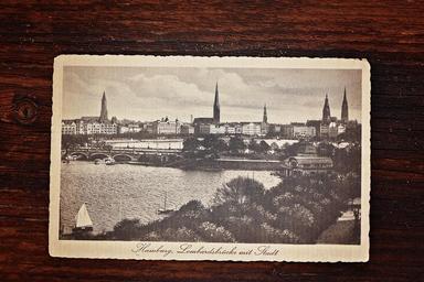 Keywords: postcard hamburg old antique vintage worn close wood greeting cards
