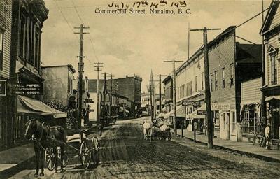 | Keywords: road outdoor vehicle bike photo border skyline "Commercial Street, Nanaimo, B. C." Canadian Souvenir Post Card. Published by G.J. Findley, Nanaimo, B. C. Printed in Germany. View looking north up Commercial Street from the 000-block in Nanaimo, BC on Vancouver Island. "Commercial Street, Nanaimo, B. C." Canadian Souvenir Post Card. Published by G.J. Findley, Nanaimo, B. C. Printed in Germany. View looking north up Commercial Street from the 000-block in Nanaimo, BC on Vancouver Island. |