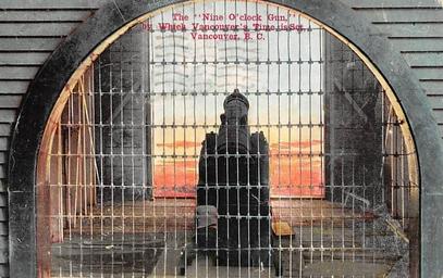 | Keywords: "The "Nine O' clock Gun," by Which Vancouver's Time is Set, Vancouver, B. C." Post Card. Empire Series. Pacific Publishing Co., Vancouver, B.C. Nine O'Clock Gun, installed by the Department of Fisheries in 1898 at Brockton Point, Stanley Park, Vancouver, BC. It was first fired here on October 5, 1898. It marked the start-stop of the abundant local Coal Harbour fishery who tended to wastefully over-catch beyond the daily capacities of the local canneries and markets. Used until the fishing fleets began working the ocean. Since used as a time piece. "The "Nine O' clock Gun," by Which Vancouver's Time is Set, Vancouver, B. C." Post Card. Empire Series. Pacific Publishing Co., Vancouver, B.C. Nine O'Clock Gun, installed by the Department of Fisheries in 1898 at Brockton Point, Stanley Park, Vancouver, BC. It was first fired here on October 5, 1898. It marked the start-stop of the abundant local Coal Harbour fishery who tended to wastefully over-catch beyond the daily capacities of the local canneries and markets. Used until the fishing fleets began working the ocean. Since used as a time piece. |
