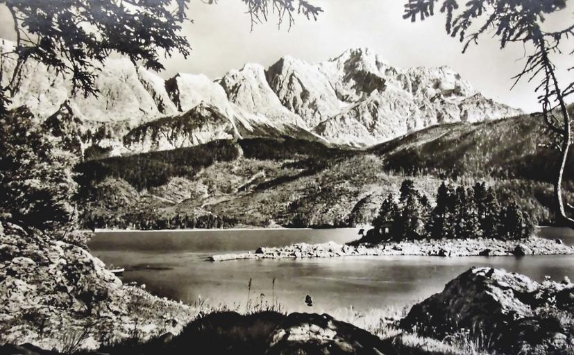 Keywords: postcard seascape old tree bavaria germany nature mountains lake alpine mirroring
