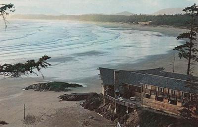 | Keywords: outdoor landscape shore coast seaside "Wickaninnish Inn Long Beach, British Columbia, Canada The beach surpasses anything in Europe. In size, it overwhelms Waikiki or Acapulco. For sheer raw nature, only some of the Australian beaches can compare. The Inn speaks for itself. Luxurious accommodation, fine food, restful atmosphere. No radio, TV or newspapers." Post Card. 21938-C. Pub. by Dan Propp Sales, Box 907, Postal Station A, Vancouver, 1. Made in Canada. Dexter Color, Canada, Ltd. Cornwall, Ontario. View looking NW towards Wickaninnish Beach and the Wickaninnish Inn, located off the Tofino-Ucluelet Highway on the west coast of Vancouver Island. Now within the Pacific Rim National Park Reserve (Parks Canada). The original Wickaninnish Inn operated from 1964 to 1977. In 1989, the Federal Government of Canada opened the Wickaninnish Interpretive Centre which provided a place for visitors to learn about the Pacific Rim National Park Reserve (established 1971) though exhibits, films and special events. In 2011, the Visitors Centre was renamed the Kwisitis Visitors Centre. "Wickaninnish Inn Long Beach, British Columbia, Canada The beach surpasses anything in Europe. In size, it overwhelms Waikiki or Acapulco. For sheer raw nature, only some of the Australian beaches can compare. The Inn speaks for itself. Luxurious accommodation, fine food, restful atmosphere. No radio, TV or newspapers." Post Card. 21938-C. Pub. by Dan Propp Sales, Box 907, Postal Station A, Vancouver, 1. Made in Canada. Dexter Color, Canada, Ltd. Cornwall, Ontario. View looking NW towards Wickaninnish Beach and the Wickaninnish Inn, located off the Tofino-Ucluelet Highway on the west coast of Vancouver Island. Now within the Pacific Rim National Park Reserve (Parks Canada). The original Wickaninnish Inn operated from 1964 to 1977. In 1989, the Federal Government of Canada opened the Wickaninnish Interpretive Centre which provided a place for visitors to learn about the Pacific Rim National Park Reserve (established 1971) though exhibits, films and special events. In 2011, the Visitors Centre was renamed the Kwisitis Visitors Centre. |