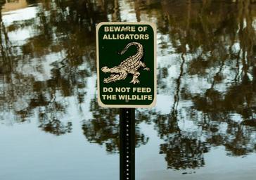 Keywords: poster warning care danger crocodiles lake reflection animal world nature