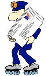 Keywords: postman mailman carrier fast fun inline skating letter mail man person roller skates uniform