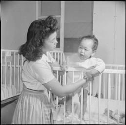 | Keywords: Poston, Arizona. Cheiko Neeno, nurse's aid student at th Poston Hospital, attending a baby patient . . . - NARA - 537102.jpg Scope and content The full caption for this photograph reads Poston Arizona Cheiko Neeno nurse's aid student at th Poston Hospital attending a baby patient in the children's ward These nurse's aid students are taught to efficiently assist Registered Nurses in the care and treatment of patients The course consists of one year's intensive training General notes 537102 Local identifier 210-G-B494 Department of the Interior War Relocation Authority 02/16/1944 - 06/30/1946 NARA-Author Stewart Francis War Relocation Authority photographer Photographer 8464475 <br /> Still Picture Records Section Special Media Archives Services Division NWCS-S National Archives at College Park 8601 Adelphi Road College Park MD 20740-6001 1943-05-03 Record group Record Group 210 Records of the War Relocation Authority 1941 - 1989 Record group ARC 537 Central Photographic File of the War Relocation Authority compiled 1942 - 1945 Series ARC 536000 File unit File unit ARC Variant control numbers NAIL Control Number NWDNS-210-G-B494 Other versions <gallery> File Poston _Arizona _Cheiko_Neeno _nurse's_aid_student_at_th_Poston_Hospital _attending_a_baby_patient_ _ _ _-_NARA_-_537102 tif tif File Poston _Arizona _Cheiko_Neeno _nurse's_aid_student_at_th_Poston_Hospital _attending_a_baby_patient_ _ _ _-_NARA_-_537102 jpg jpg </gallery> NARA-cooperation PD-USGov Poston War Relocation Center |