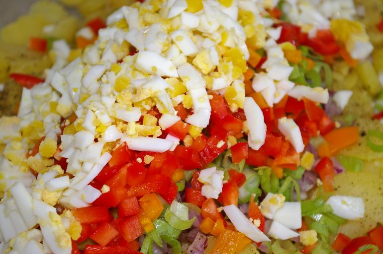 | Keywords: potatoes eat food salt potatoes salty lunch staple food cooked cook court meal healthy delicious potato salad salted potatoes pepper salt and pepper salted salt seasoned preparation onions vitamins nutrition vegetarian kitchen feed vegetables frisch salad party appetizing cut garden party tasty enjoy sommerfest celebration prepare edible spring onions egg boiled eggs color | ||||