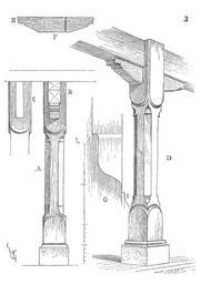 | Keywords: Poteau.douane.Constance.png La figure 2 donne en coupe transversale en A le poteau supérieur avec son chapeau et ses poitrails en B ceux-ci étant supposés enlevés en C et la fourchette de la tête du poteau étant alors visible En D est un tracé perspectif de cet assemblage de charpente; en E le chapeau désassemblé avec son embrévement F entrant dans la fourchette de tête En G est tracé le congé inférieur du chanfrein avec le profil en I des renforts demi-circulaires de la base et du chapiteau Ces poteaux supérieurs ainsi que tous les chapeaux poitrails et solives sont de sapin et taillés avec le plus grand soin Mais ce qui a lieu de surprendre dans cet ouvrage c'est la belle qualité des bois et leur parfaite conservation Ces poteaux non plus que les poitrails ne présentent de gerçures ils semblent taillés dans une matière homogène Viollet-le-Duc Drawings by Eugène Viollet-le-Duc Bolsters timber framing |