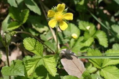 Keywords: Potentilla indica in Mount Ikeda.jpg Mock strawberry Potentilla indica in Mount Ikeda Ibigawa Gifu pref Japan ヤブヘビイチゴ 池田山にて own Alpsdake 2010-05-01 Yellow flowers Potentilla indica