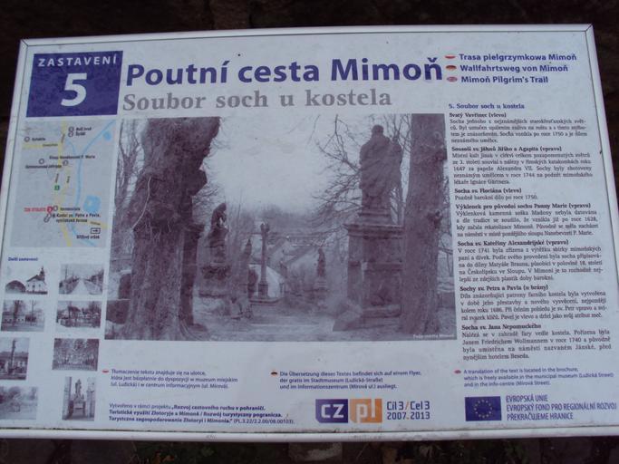 Keywords: Poutní Mimoň 6.jpg cs Cedule naučné stezky own Zákupák 2010-10-16 Poutní cesta Mimoň Statues in Mimoň Church of Saints Peter and Paul in Mimoň