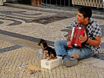 Keywords: poverty beggar young alms street artist male collect money accordion instrument akordeon