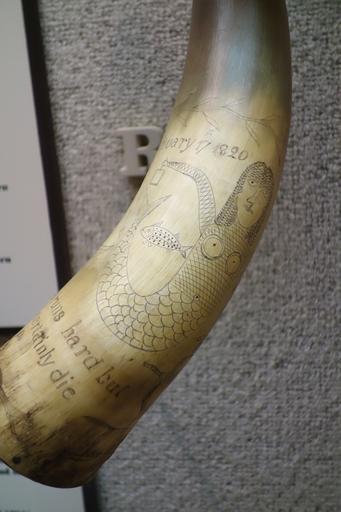 | View Original: | Powder horn dated 'Liberty, January 17, 1820', with motto 'Tallyho Old Reonard Runs hard but must certainly Die' - Huntington Museum of Art - DSC05514.JPG (3648x5472) | |||