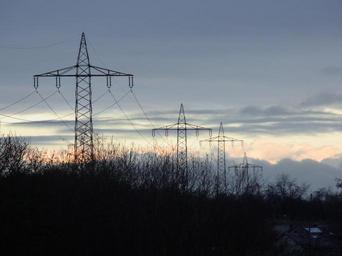 Keywords: power poles current line landline energy twilight sun dusk sky clouds nature
