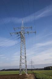 Keywords: power poles power supply power lines pylon strommast new current cable power line technology sky blue