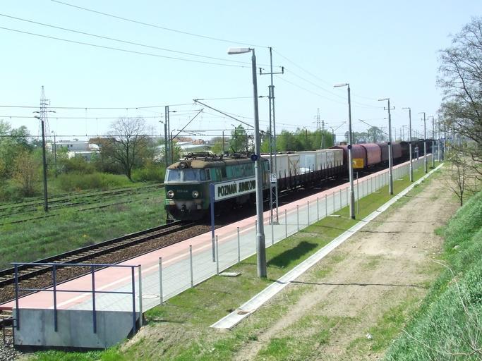 Keywords: Poznan Junikowo.jpg pl stacja Poznań Junikowo i przejeżdżający przez nią pociąg towarowy own Paweł Świątkowski Junikowo Train stations in Poznań Junikowo Railway line 3 Poland Poznań Junikowo