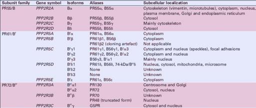 Keywords: PP2Alocalitzacio.png en Localització subcellular de les diferents subunitats PP2A B Own Daniel Barcelona 2008-08-30 Tables information