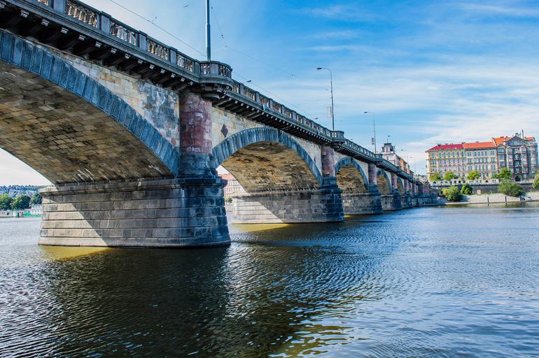 Keywords: prague city river bridge blue sky czech republic architecture