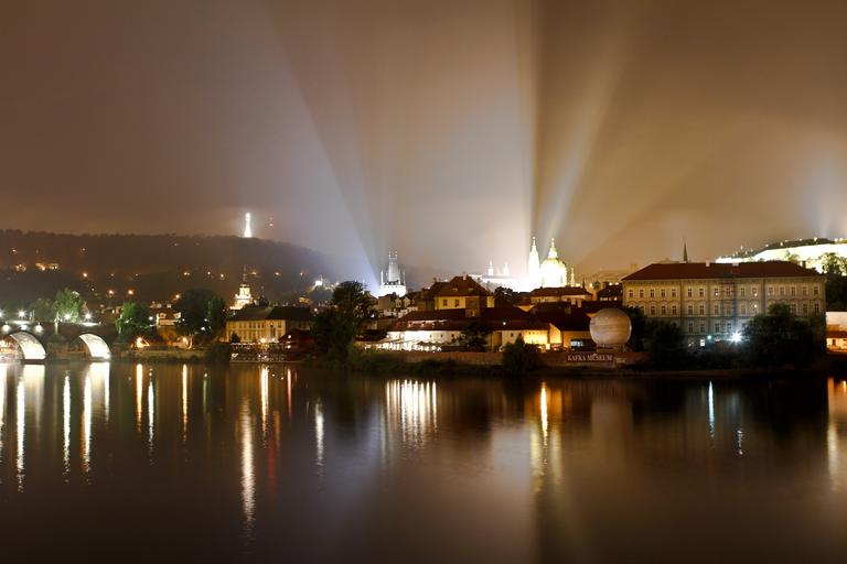Keywords: prague moldova city old town czech republic river night fog