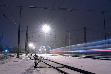 Keywords: prague snow night lights railway station