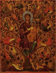 | Keywords: Praises of the Theotokos, Circle of Ioannis Apakas (c. 1600, Pushkin museum) 02.jpg Circle of Ioannis Apakas Virgin with Tree of Jesse Praises of the Theotokos Circa 1600 Похвала богомате и Иоанн Апакасс к уг Около 1600 К ит де ево темпе а позолота чеканка накладные нимбы 60х46 см Ж-1528 Г ИИ Рестав и ована в 1932 г в масте ской Госуда ственного музея Изоб азительных Искусств им А С Пушкина естав ато С С Чу аков; затем в 1953 г там же естав ато ы П Д Ко ин и Б Шахов Доска цельная шпонки нимбы накладные чеканные позднейшие Ут аты левкаса и к асочного слоя местами поновления естав ационные тони овки 1932 г Г афья адписи г еческие имена п о оков соответствующие тексты на свитках Стилистическая сп авка Икона а хаизи ующего стиля восп оизводит п ек асный об азец к итского искусства убежа XV-XVI вв возможно к уга иколаоса Рицоса Оче тания фигу ы Богомате и вытянутой и асши енной книзу ост ые носы ликов суховатость исунка и деталей темный коло ит близки к угу п оизведений Иоанна Апакаса иниатю ная техника с мельчайшими светами и изящным ассистом соответствует копийному и консе вативному ха акте у его тво чества Однако нет уве енности что икону можно п иписать кисти этого масте а См иконы Иоанна Апакаса Деисус со святыми Анд еем и Па аскевой около 1600 г из монасты я св Иоанна Богослова на о Патмос http //lib pstgu ru/icons/index2 php option com_content view article id 1531861221 1531861221 catid 6 2009-11-26-12-53-50 Itemid 8 pageres 1 File source<br> http //www arts-museum ru/data/fonds/europe_and_america/j/2001_3000/1528_apakass_viva_virgin/index php sea_val D0 BF D0 BE D1 85 D0 B2 D0 B0 D0 BB D0 B0 Official museum page 1600 Иоанн Апакасс к уг Praises of the Theotokos Icons of Tree of Jesse Icons in the Pushkin Museum Synaxis exhibition Johann Apakass Files uploaded by Shakko from various sources Korin family PD-old |
