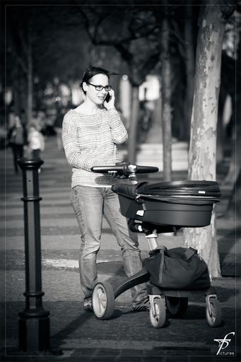 Keywords: pram baby carriage perambulator baby stroller stroller pushchair buggy children's push chair mother woman street life downtown black and white