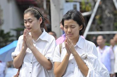 Keywords: praying buddhists thai temple buddhism thailand asia women girls people