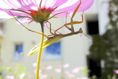 Keywords: praying mantis insect green animal fishing locust flower blossom bloom lauer position lauer