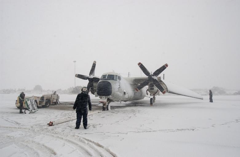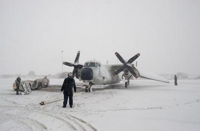 | Keywords: Prearations to move a C2A Greyhound - 040213-N-0780F-057.jpg en 040213-N-0780F-057 Souda Bay Crete Greece Feb 13 2004 “ Fleet Logistics Support Squadron Four Zero VRC-40 maintenance personnel prepare to move one of their C-2A Greyhound aircraft currently assigned to USS George Washington CVN 73 into the protection of a hangar as a large snow storm hits the largest Greek Island VRC-40 is tasked with providing Carrier Onboard Delivery COD services to the Navy ™s Atlantic and Sixth Fleets VRC-40 homeported at Naval Station Norfolk Va operates the C-2A Greyhound and reports to Commander Airborne Early Warning Wing U S Atlantic Fleet U S Navy photo by Paul Farley RELEASED http //www navy mil/view_image asp id 12011 U S Navy photo by Paul Farley RELEASED 2004-02-13 PD-USGov-Military-Navy original upload log wikitable date/time username resolution size edit summary ---- 2008-10-05T15 29 17Z User Alaniaris 2287×1500 285 7Kb <nowiki> en 040213-N-0780F-057 Souda Bay Crete Greece Feb 13 2004 “ Fleet Logistics Support Squadron Four Zero VRC-40 maintenance personnel prepare to move one of their C-2A Greyhound aircraft currently assigned to USS Geor</nowiki> Images by Alaniaris/PD uploads Grumman C-2 Greyhound Military aircraft in snow Fleet Logistics Support Squadron 40 United States Navy |