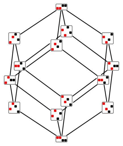 Predicate logic; 4 variables; implications lattice; ordered partitions; 1100.svg (245x290)