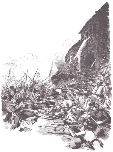 | Keywords: Predigertor Freiburg 1848.jpg  de Angriff der Bundestruppen auf das Predigerthor in Freiburg am 24 April 1848 Wilhelm Blos Die deutsche Revolution Stuttgart 1893 ; Nachdruck 1978 S 199 Otto E Lau 1893 History of Freiburg im Breisgau 1848 Hecker Uprising PD-old Location not applicable Otto Emil Lau |