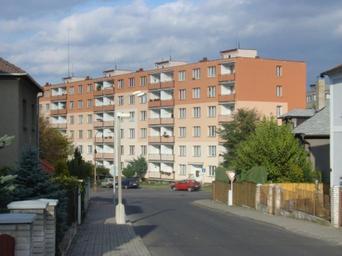 Keywords: Prefab.jpg A prefabricated house in Kadaň My own photo 2005-10-22 own assumed Aloysius Unidentified locations in Kadaň Streets in Kadaň Panel apartment blocks in the Czech Republic