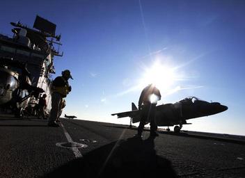 | Keywords: Prepare for Takeoff (6801723481).jpg An AV-8B Harrier with Marine Medium Tiltrotor Squadron VMM-261 Reinforced 24th Marine Expeditionary Unit prepares to take off from the flight deck of the USS Iwo Jima Jan 29 2012 as the 24th MEU prepares for their final at-sea training exercise The 24th MEU is conducting their Certification Exercise with Amphibious Squadron 8 scheduled Jan 27 to Feb 17 which includes a series of missions intended to evaluate and certify the unit for their upcoming deployment The harrier detachment is from VMA-542 based out of Marine Corps Air Station Cherry Point N C U S Marine Corps photo by Lance Cpl Michael Petersheim https //www flickr com/photos/marine_corps/6801723481/ Prepare for Takeoff 2012-01-29 15 40 https //www flickr com/people/40927340 N03 Marines from Arlington VA United States PD-USGov United States Marine Corps Official Page https //flickr com/photos/40927340 N03/6801723481 2016-09-03 23 36 19 United States Government Work 24th Marine Expeditionary Unit AV-8B Harrier II US Marine Corps Taken with Canon EOS 5D Mark II |